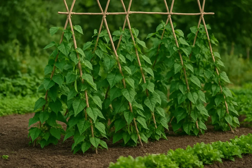 - Opbinding: Stangbønner skal have et solidt stativ eller snore at klatre i.