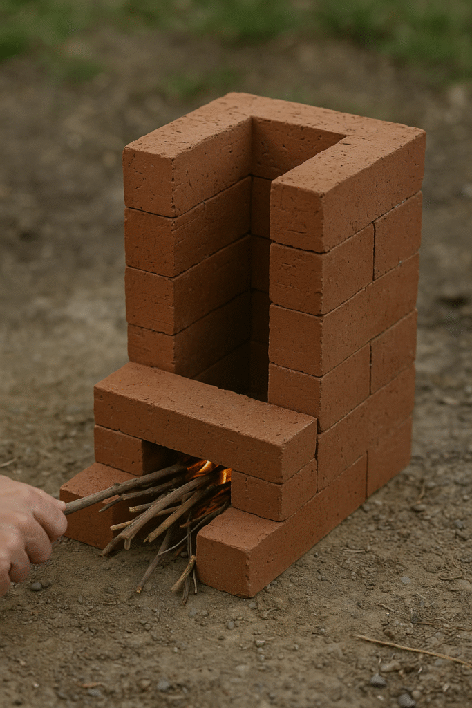 - Forbrændingskammer: Stil ildfaste mursten eller et rør lodret for at skabe skorstenen.