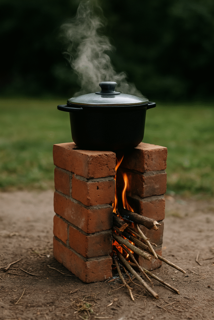 - Grydeholder: Placer en stålplade eller rist øverst, så gryden kan stå stabilt.