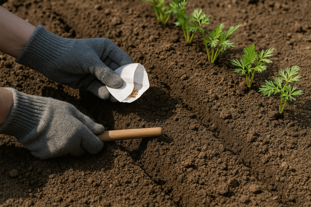 • Direkte såning: Gulerødder tåler ikke omplantning, så frøene sås direkte på voksestedet.