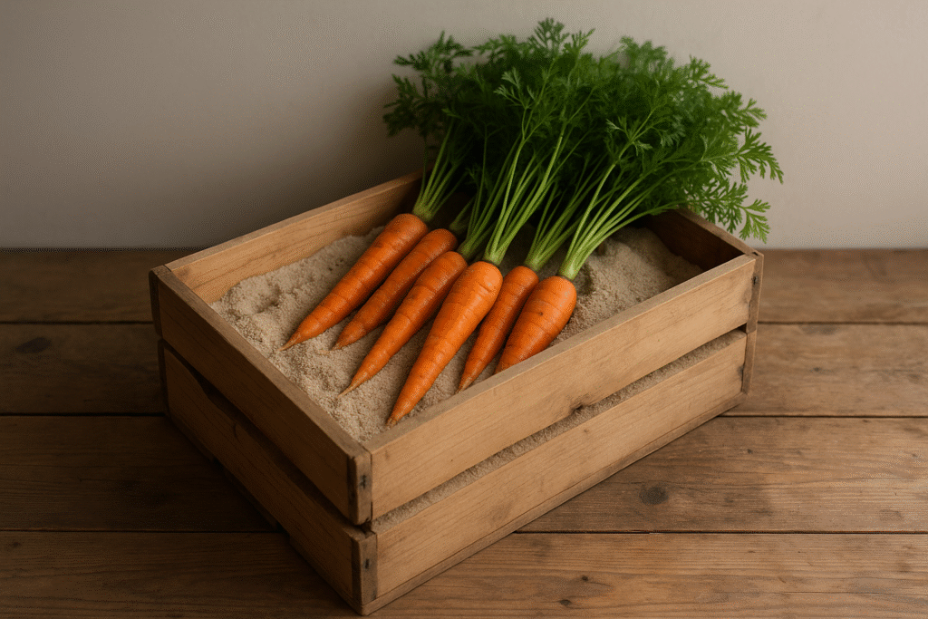 Gulerødder kan gemmes hele vinteren i fugtig sand i kasser.