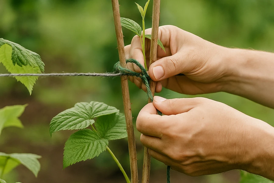 Brug wirer eller spalier langs rækken, og bind skuddene løbende, så de får lys, luft og bliver nemme at høste.