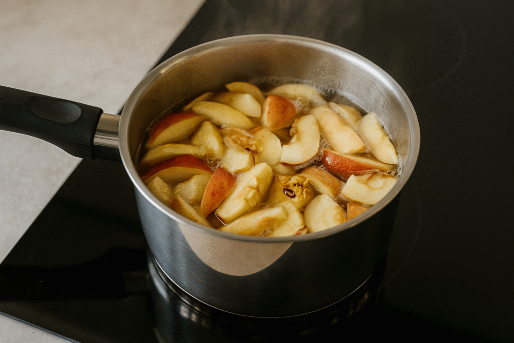 Kogning af æbleskaller og kernehuse udtrækker pektinen.