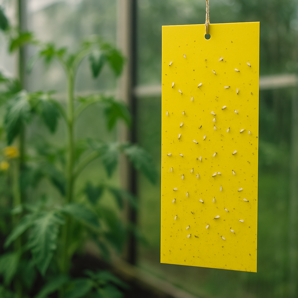 - Gule limplader tiltrækker og fanger de voksne hvide fluer.
