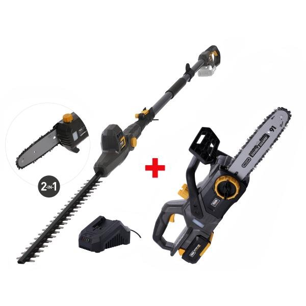 Batteri-kædesav og stanghækkeklipper/stangkædesav baseret på den nyudviklede 20V platform, som inkluderer en bred vifte af batteri havemaskiner.