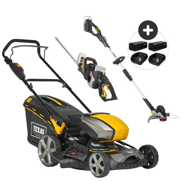 Du får maskiner til hele haven med denne pakke af havemaskiner i 40V-batteriserien fra TEXAS. Razor 4620Li er en skub græsslåmaskine på batteri til de mindre græsplæner, men hvor du både får et bredt 46 cm klippeskjold i stål, 4-i-1 klippefunktion, en 650