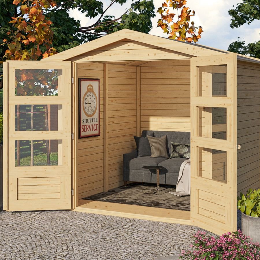 Hvis man er til et klassisk udformet havehus, så vil denne model helt sikkert være noget for dig. Den klassiske dobbeltfløjede dør med 3 lysudskæringer ved hver dørfløj sikrer tilstrækkeligt lys indenfor. Få plads til dine haveredskaber eller lidt siddepl
