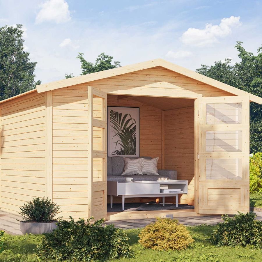 Hvis man er til et klassisk udformet havehus, så vil denne model helt sikkert være noget for dig. Den klassiske dobbeltfløjede dør med 3 lysudskæringer ved hver dørfløj sikrer tilstrækkeligt lys indenfor. Få plads til dine haveredskaber eller lidt siddepl