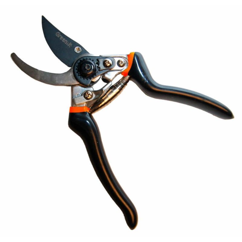 Effektiv beskæresaks med teflonbelagt skær og ergonomisk håndtag, samt smart lukkemekanisme.