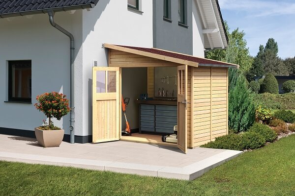 Bevtoft model 2 redskabsskuret til montage op ad husmuren er den ideelle løsning til mindre haver. Redskabsskuret har en fin størrelse, hvor man kan få plads til en stor del af de vigtigste ting. Ens dyrebare haveplads bliver der ikke taget det store af