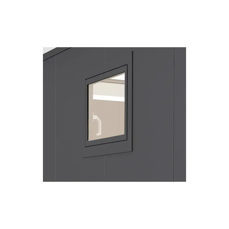 Denne høje kvalitet dobbeltglas vindue giver ekstra dagslys ind i Casanova Annekset Størrelse 83×65 cm , monteret højde 119 cm fra nederste kant af ydre ramme. Hængselsiden kan vælges efter behov . Da sidevægpladerne skal forskæres af Biohort så den pass