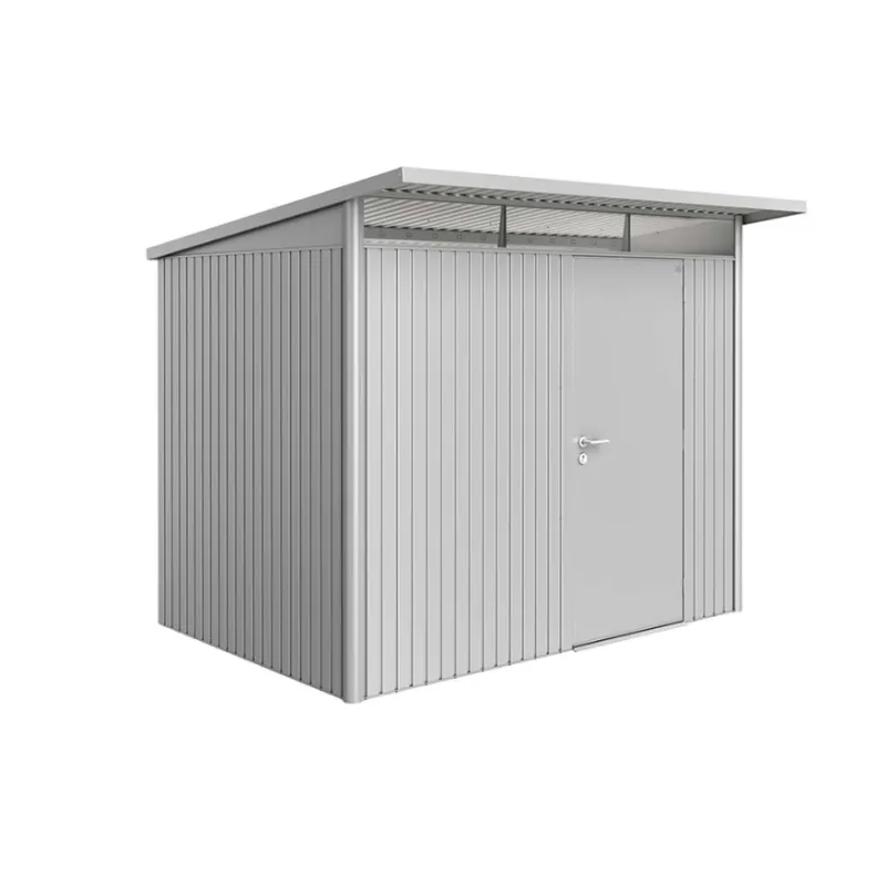Biohort Avantgarde A3 – 15039 Sikkerhed: 3-vejs låsemekanisme med rustfrit stål dørhåndtag, standard cylinder of reserve nøgle. Moderne design til haveskuret. Optimal praktisk: installation af en dør i sidevæggen er mulig. Materiale i top kvalitet: varm