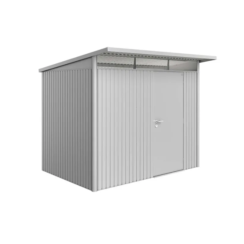 Biohort Avantgarde A5 – 15059 Sikkerhed: 3-vejs låsemekanisme med rustfrit stål dørhåndtag, standard cylinder of reserve nøgle. Moderne design til haveskuret. Optimal praktisk: installation af en dør i sidevæggen er mulig. Materiale i top kvalitet: varm