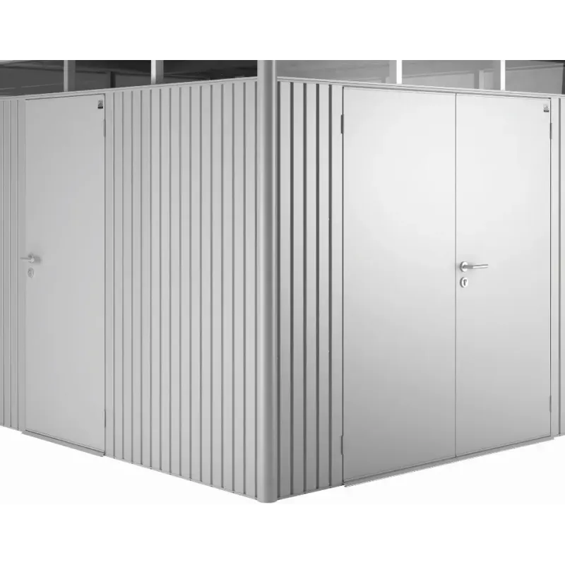 Biohort Ekstra dør til Highline Mørkegrå Ekstra dør (indgangsdør til siden med stål håndtag) For at gøre redskabsrummet tilgængelig fra 2 sider, kan der indbygges en ekstra dør i sidevæggen. Som standard leveres til sidedøren en 3-punkts lås, gasfjeder,