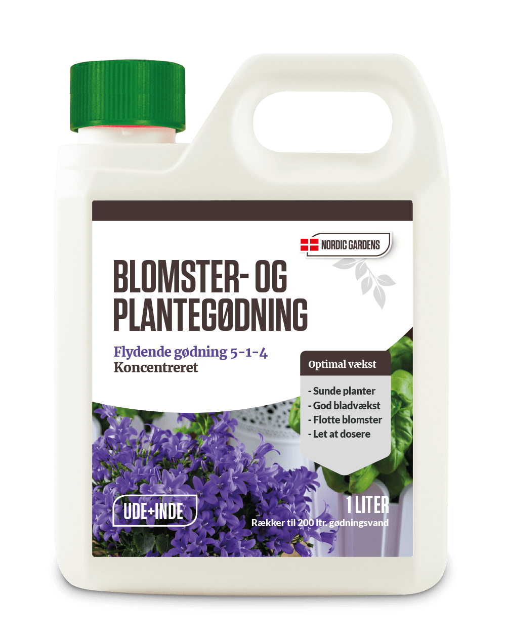 Blomster- og plantegødning 5-1-4 fra Nordic Gardens er en koncentreret flydende gødning, der er velegnet til alle typer blomster og planter både ude- og indendørs. Sørger for en flot grøn farve til bladene, god vækst og stærke planter. Anvendelse: Rystes