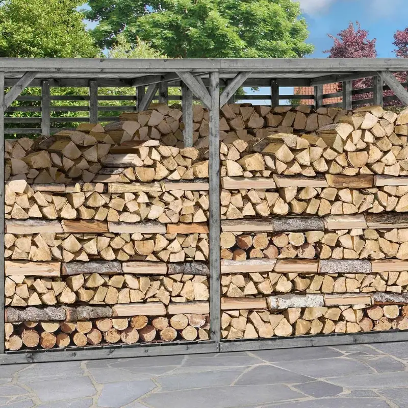 Brændeskur model GIGA ekstra stort brændeskur i grå trykimprægneret træ