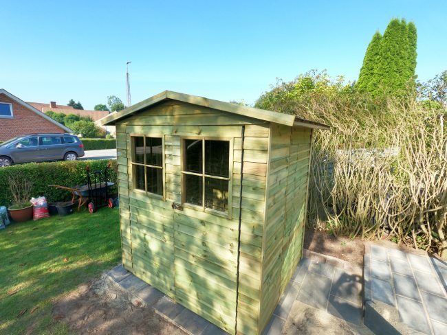 Hamburg redskabsskuret i trykimprægneret træ, er en meget populær budget-model, da den ikke optager særlig meget plads i din have, men fortsat giver dig det ekstra rum som du står og mangler til opbevaringen. Med sådan et redskabsrum, som er i trykimprægn