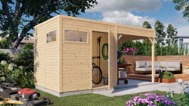 Med dette smukke og stilede havehus får du rig mulighed for opbevare det der nu skal opbevares, samtidig med at det ser pænt ud. Ydermere har havehuset et udhæng, som gør det muligt at stille en cykel eller andet i læ.