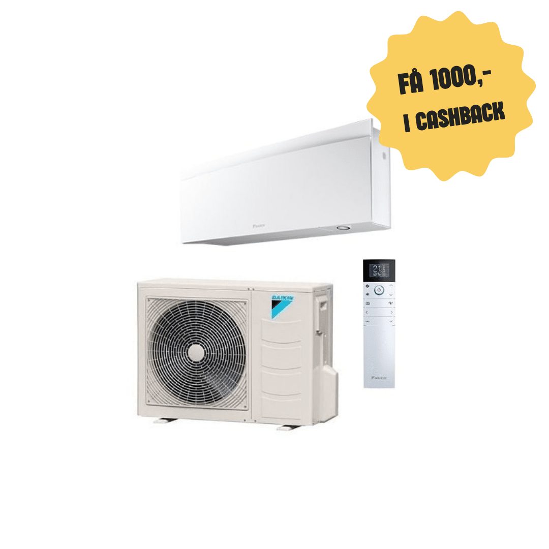 Daikin Emura er en design varmepumpe lavet med en flot buet front, hvilket gør man ikke rigtig har nogle kanter. Derved ser varmepumpen ikke så voldsom ud i rum
