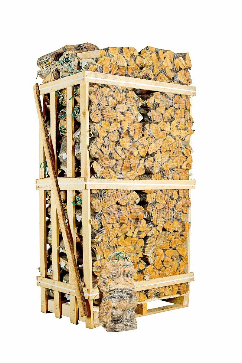 Dansk bøg på en palle med 100 x 30 liters net-sække, som er en nem måde at transportere og opbevare brændet. Bøg har en meget høj brandværdi, men det er stadig nemt at optænde, hvilket gør det til den foretrukne træsort hos mange brændeovnsejere.Hos dansk