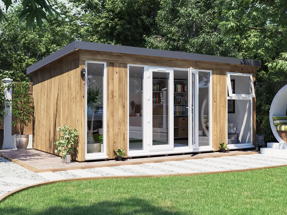 Dominator tilbyder et stilfuldt og funktionelt havekontor, hvor du får dig et unikt rum. Lyset strømmer ind fra de 28 mm uPVC vinduer og døre med termoruder, som skaber et rummeligt og godt