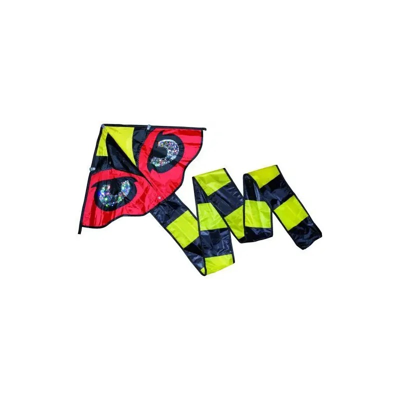 Drage M/hale Til 228-359 – 228-359-06Ekstra drage til at bytte/afveksle med, så fuglene ikke vænner sig til dem. 60 cm bredMed lang sort/gul hale. Ekstra store reflekterende øjne. Passer til Fugleskræmmer 228-359, 228-360, 228-362 og 228-363.