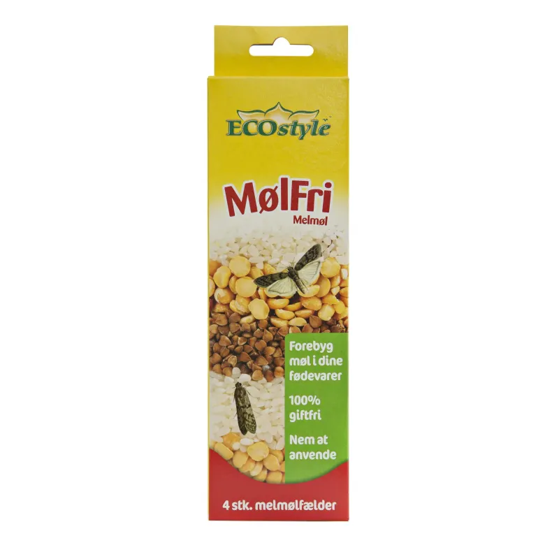 Ecostyle Mølfri MelmølEcostyle Melmøl Sådan undgår du at melmøl ødelægger al din mad Med ECOstyle MølFri – Melmølfælde er det nemt at forebygge angreb fra mel og frømøl. Melmøl finder du oftest i tørre fødevarer som mel, gryn og ris. Men de kan også lid