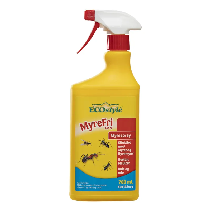 Ecostyle Myrefri 700ml – Pumpespray KtbMyrefri – Ecostyle m/spray – 700 ml MyreFri spray til både ude og inde Denne MyreFri spray fra Ecostyle er et rent naturprodukt, der effektivt bekæmper myrer, men som tager hensyn til mennesker, andre dyr og miljøet.