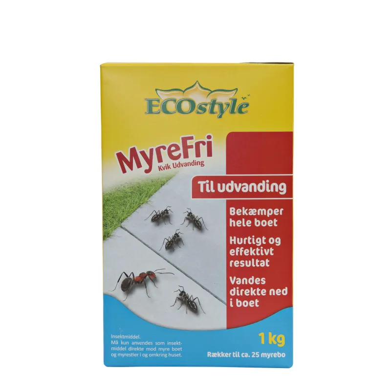 Ecostyle Myrefrikvik Pulver – Konc.til UdvandingEcostyle Myrefrikvik Pulver – Konc.til Udvanding – Bekæmper hurtigt og effektivt hele myreboet – Anvendes direkte mod myreboet og myrestier i og omkring huset, f.eks. langs husmuren, havegange, terrasser mm.
