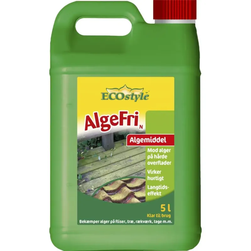 Ecostyle Algefri 5000ml – Klar Til Brug• Klar til brug• Virker hurtigt og effektivt mod alger• Mod alger på hårde overflader som fliser, træ og glas• Anvend på indkørsel, terrasse, havemøbler, rækværk, tag, drivhus m.m.• Baseret på naturlige akt