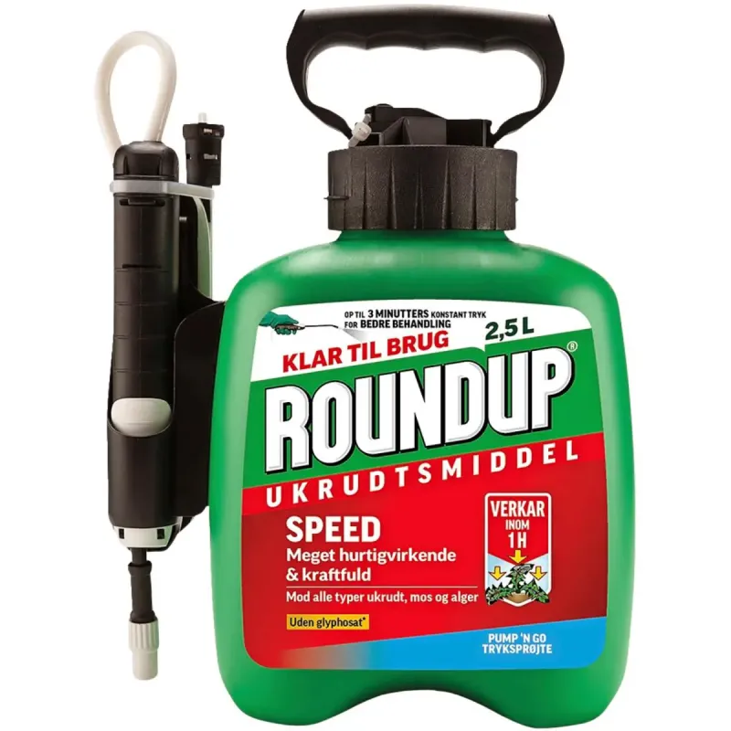 Evergreen Roundup Speed 2,5 Ltr Klar til brug formulering. Glyfosatfri, baseret på mættede fedtsyrer som hurtigt bliver nedbrudt i naturen. Ideel til stier, terrasser, indkørsler og blomsterbede. Justerbar spray indstilling, til enkeltstående eller