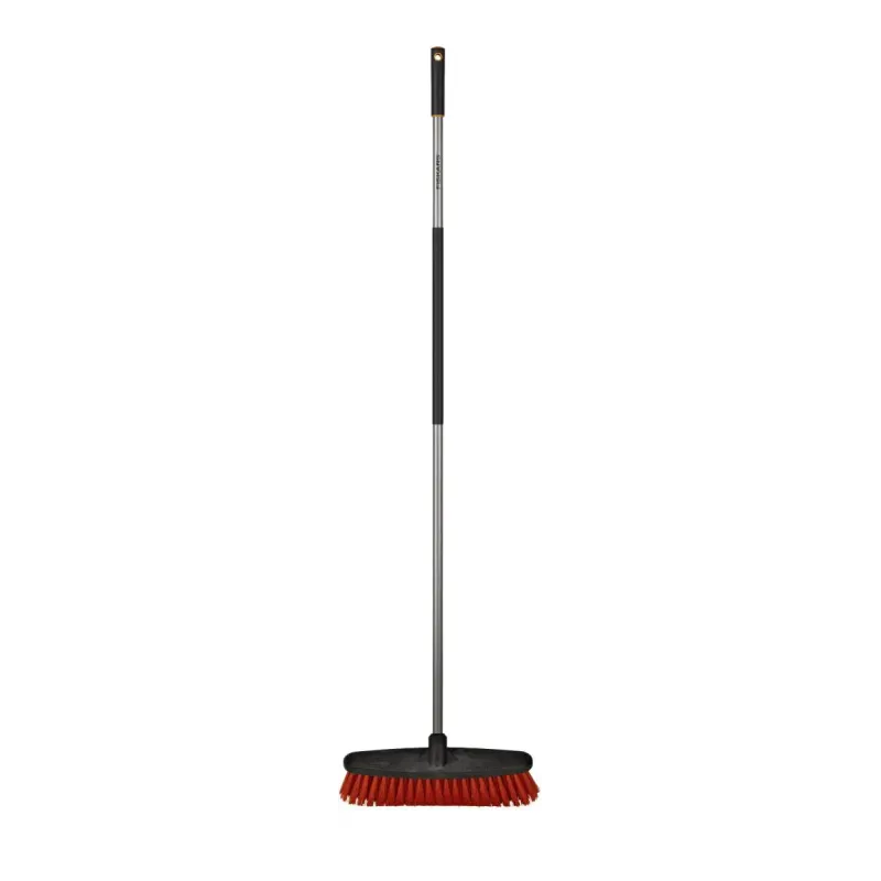 Fiskars Kost Ergonomic Grå Ergonomisk korrekt kost i den kendte Ergonomickvalitet, hvor man står helt oprejst, mens man fejer. Dråbeformet stålskaft. Hoved i polypropylen med børster af orange PVC.