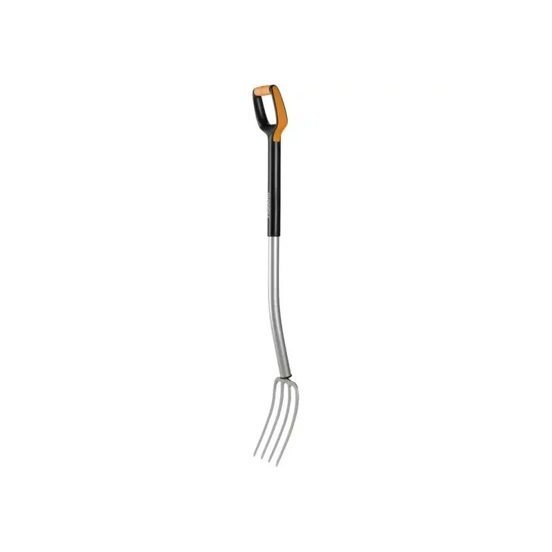 Fiskars Xact Gravegreb Stor – 1003685 Produktbeskrivelse Let og ergonomisk gravegreb udformet i hærdet stål, hvor grebens tænder let trænger ned i hård jord. Det lange skaft er tilpasset høje forbrugere. Håndtaget har SoftGrip belægning for komfort
