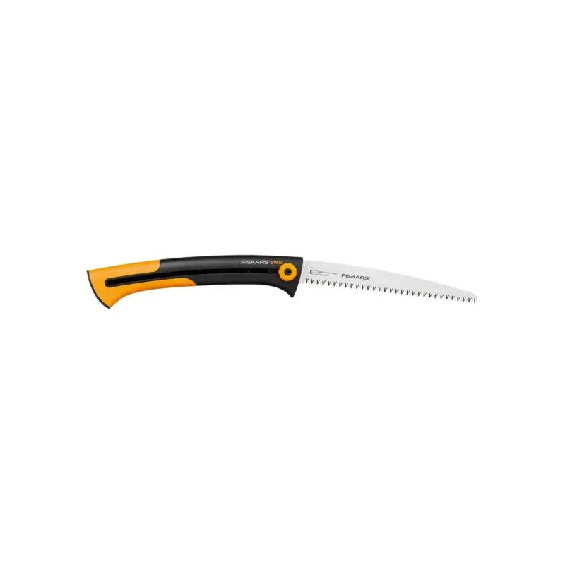 Fiskars Xtract Beskæresav – 1000614 Produktbeskrivelse Superskarpt blad med en længde på 255 mm Skærer, når man trækker saven ind mod sig selv SoftGrip™-håndtaget og fingerbeskyttelse giver sikrere savning Blad, der kan trækkes ind i håndtaget Smart b