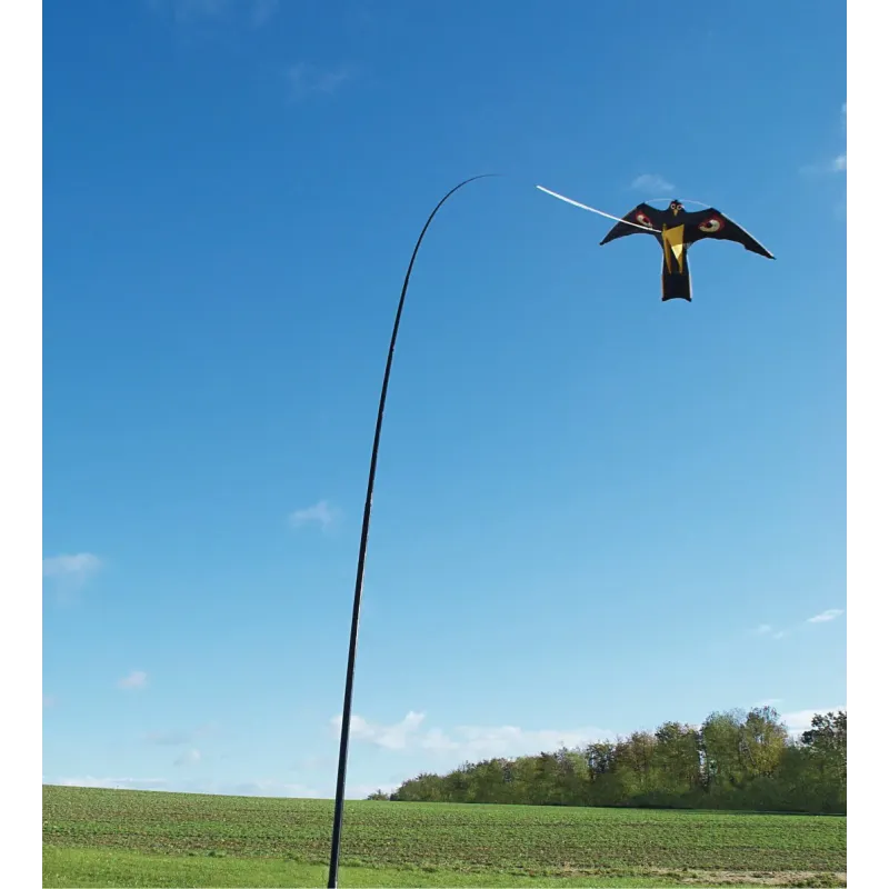 Fugleskræmmer M/1 Drage 4m – 228-360Fugleskræmmer. Sæt med stang og 2 drager. Teleskop fiberstang på max. 4-13 meter. 2 stk. dragehøg på 140 cm. Skræmmer generende fugle som f. eks. stære, måger, alliker, duer mfl. Jordspyd medfølger til nem monter
