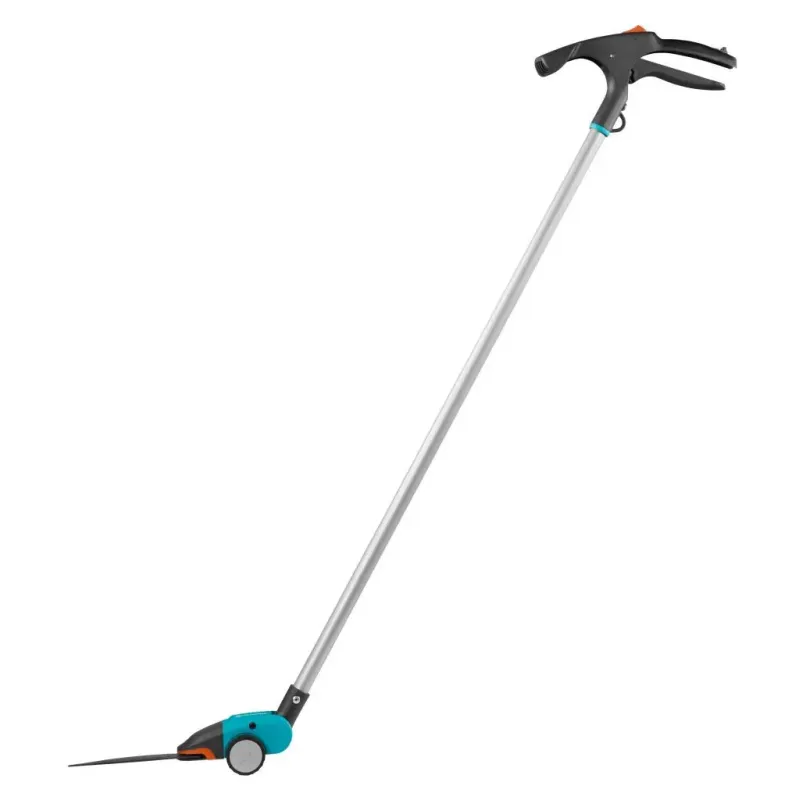 Gardena Comfort Langskaftet Græssaks – 12100-20 Gardena Comfort langskaftet græssaks med håndtag muliggør let og præcis klipning af græskanter fra en opretstående stilling. Hjulene gør det nemt at navigere saksen under klipningen. Med det justerbare vin