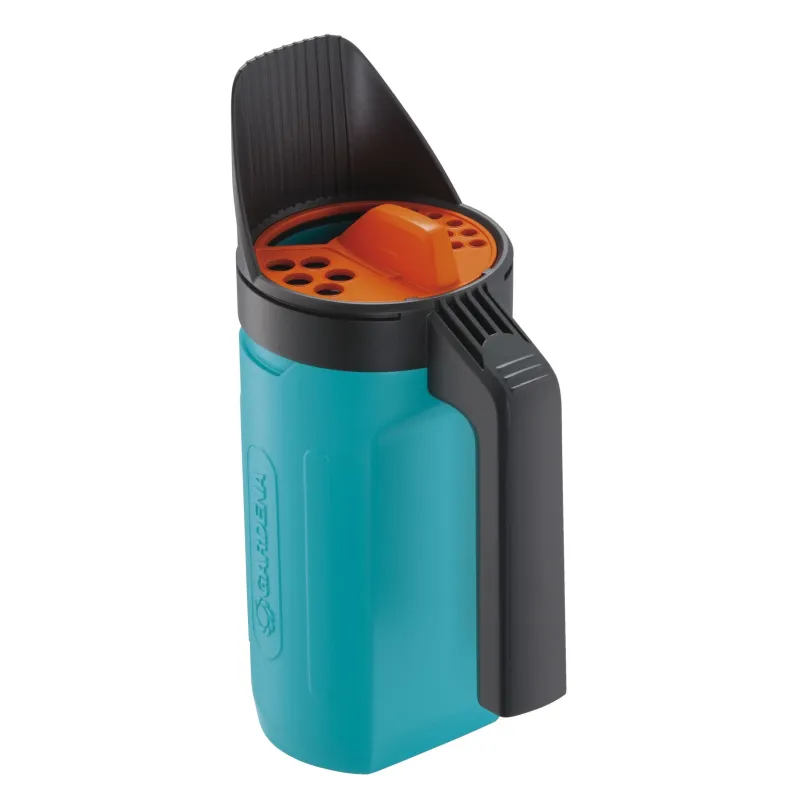 Vinter materialer som sand, salt og grus kan nu spredes jævnt i mindre områder med GARDENA lille spreder – uden snavsede hænder! Det unikke doseringssystem gør det muligt. Du skal blot dreje doseringen disken på låget og vælge den ønskede spread-åbning (a
