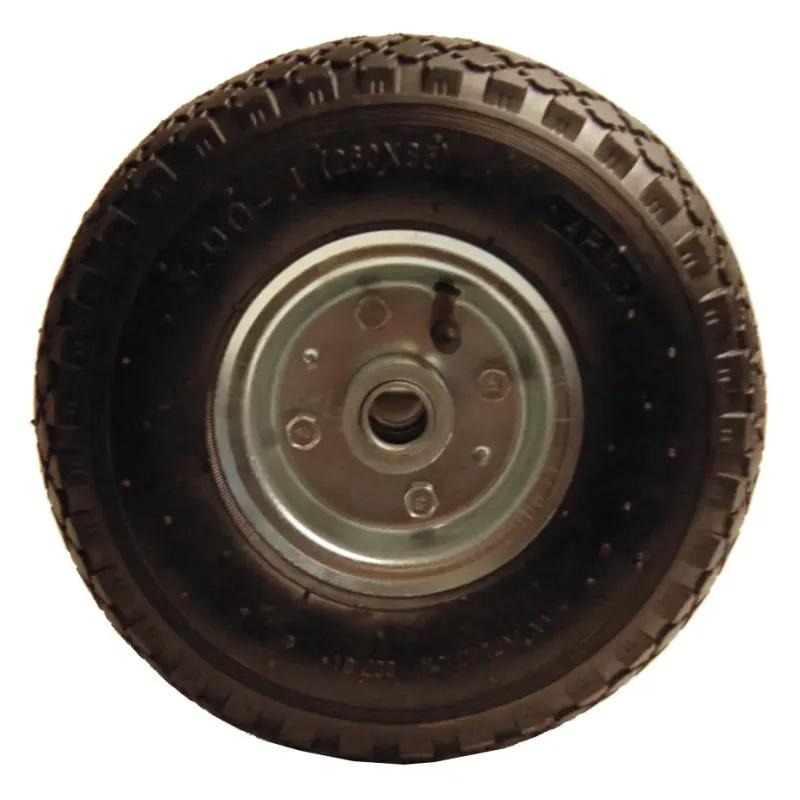 Dæk str.: 3,00 x 4″ Fælg: Stål med kuglelejer Maks. belastning 250 kg.Passer til varenr. 91.862/Sækkevogn 250 kg.