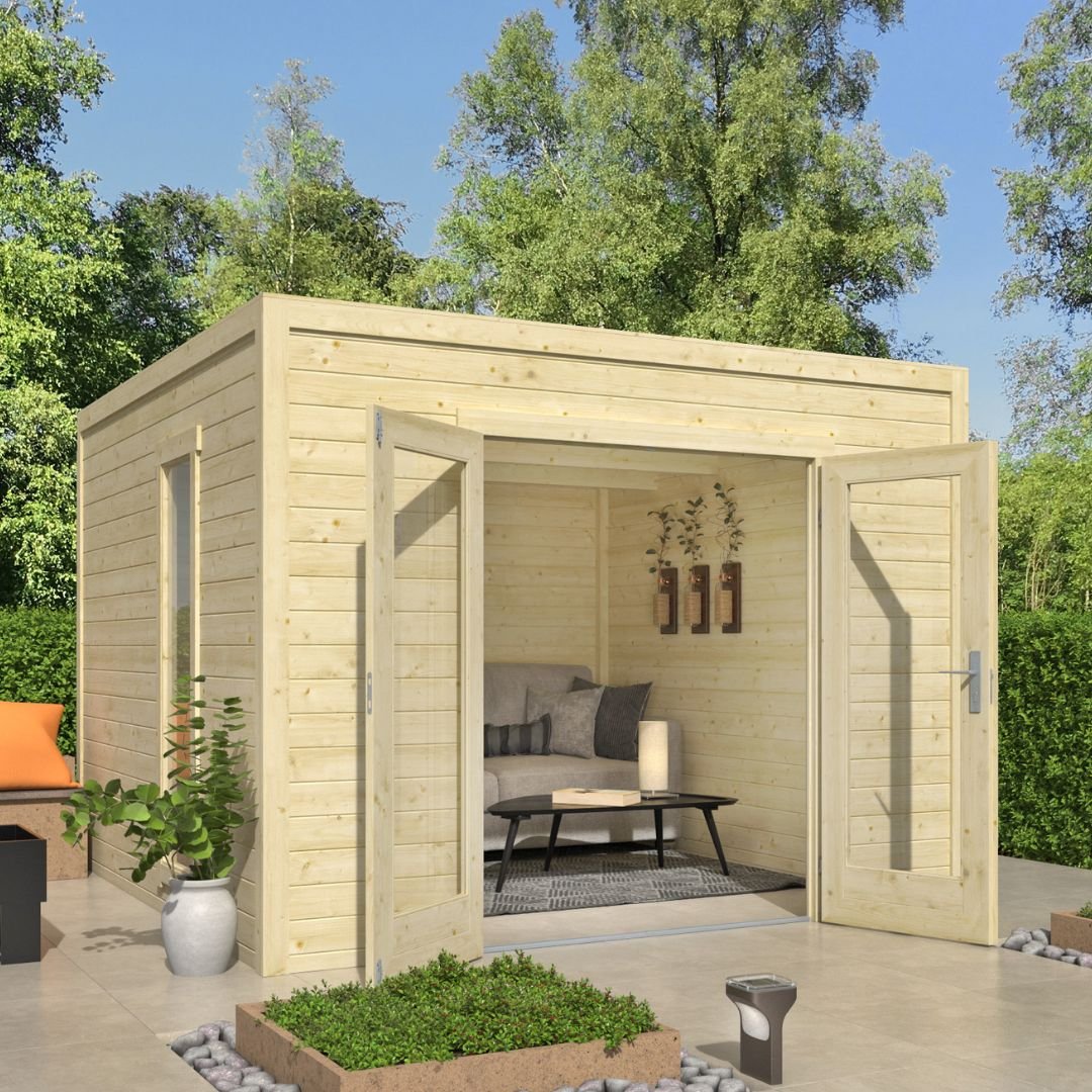 Et smukt havehus udført i fine materialer. Det kan bruges som opbevaringsrum og/eller soveplads for overnattende gæster om sommeren. Nogen vil endda bruge det som et lækkert wellness område eller et hjemmekontor i haven. Der er desuden rigtig god belysn