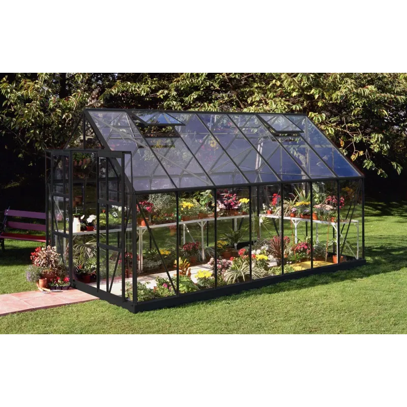 Halls Drivhus Magnum 148 sort m/3 mm hærdet glas – F09672 Det perfekte hus til haveejeren, der ønsker et drivhus med god plads. Den dobbelte skydedør giver nem adgang, og den gode sidehøjde sikrer god plads til dig og dine planter. Alle tre størrelser i