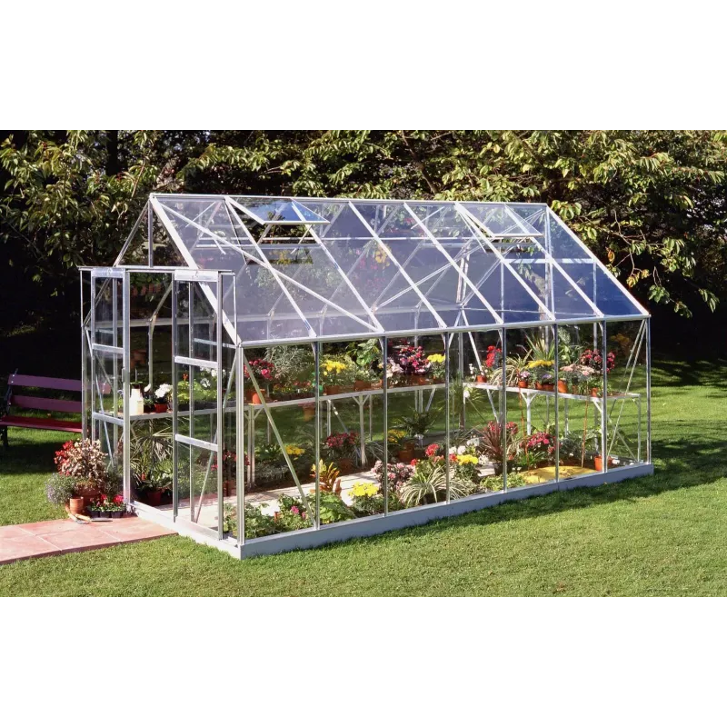 Halls Orangeri Drivhus 12,9 m² sort med 3 mm hærdet glas inkl. fundament – F09835 Det perfekte hus til haveejeren, der ønsker et drivhus med god plads. Den dobbelte skydedør giver fri og uhindret adgang selv med trillebør eller kørestol, og den gode sid