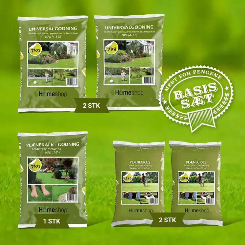 Homeshop Standard plænepakke 200m2 – Pakke 1 uden strøvogn Trænger din græsplæne til pleje og en opfriskning? Vi har gjort det nemmere for dig og sammensat et sæt af forskellige produkter, der dækker en græsplæne på ca. 200 m2. Dette sæt indeholder: â