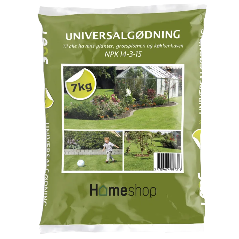 Homeshop Universal Plænegødning – 7 Kg – 801PL1001 Denne Leaf Universalgødning er klorfattig og velegnet til gødskning af alle havens planter, også græsplænen og køkkenhaven. Leaf Universalgødning virker hurtigt og effektivt og tilfører planterne alle de