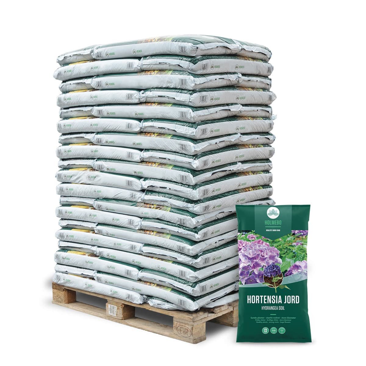 Holmebo Hortensiajord giver optimale vækstbetingelser for dyrkning af hortensia. Jordblandingen er sammensat af barkmuld, tørvemuld, dolomitkalk og mikronæringsstoffer, hvilket sikrer en let og drænende jord med en god evne til at holde på vand og nærings