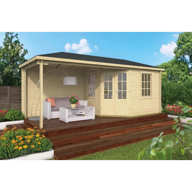 Kansas City med baldakin Bjælkehytte 28 mm – 400725N Vælg alle dine tilkøb du ønsker til produktet – Kig under Anbefalede produkter til dig på varen Afkryds det tilbehør du ønsker og læg det i kurven sammen med varen. Pris ekskl. Tagbeklædning – b