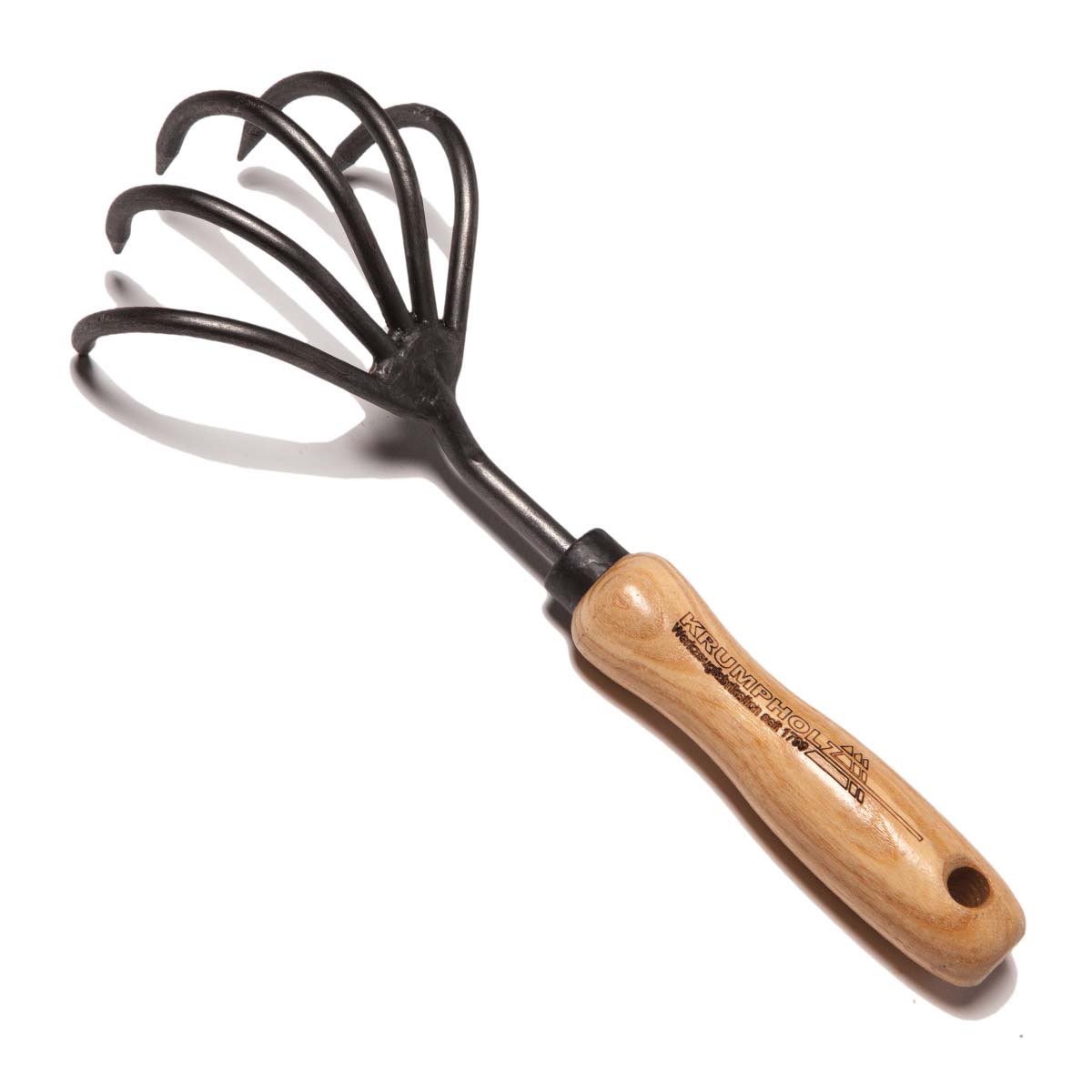 Krumpholz Kultivatoren har 5 tænder og dermed lidt bredere end vores 3 tands håndkultivator. Et præcist og effektivt redskab, udviklet til nænsom jordbearbejdning i blomsterbede og omkring sarte planter. De 5 smalle, håndsmedede kløer i hærdet stål gør de
