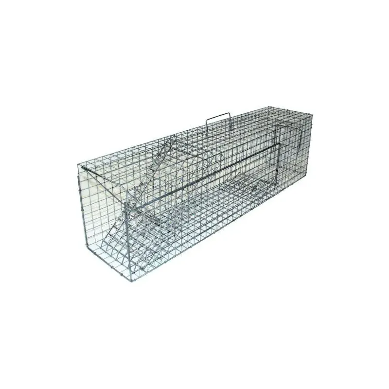 Mår-,ilder-,lækatfælde 1 Indgang – 228-660Trådfælde til levende fangst af mår, ilder eller lækat. Fanger et dyr ad gangen. Fremstillet af kraftigt trådgitter. Punktsvejst og galvaniseret med 1 indgang/faldlem. Indgangshul bredde 20 cm. – højde 18 cm. Med