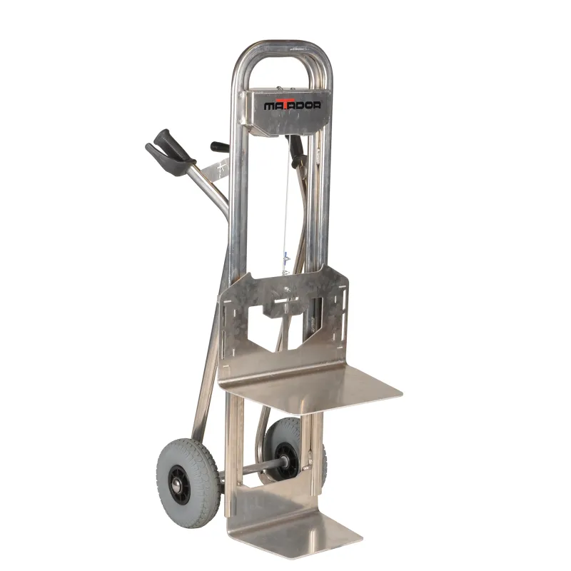 Matador Alu Sækkevogn med lift – NST300 – 18782 Den ultra lette og hårdføre sækkevogn til den professionelle bruger! Udstyret med en liftplatform, så du kan hejse dit godt let op og ned. Idéel til VVS og Hvidvare industrien, montage af hvidevarer osv. Fl