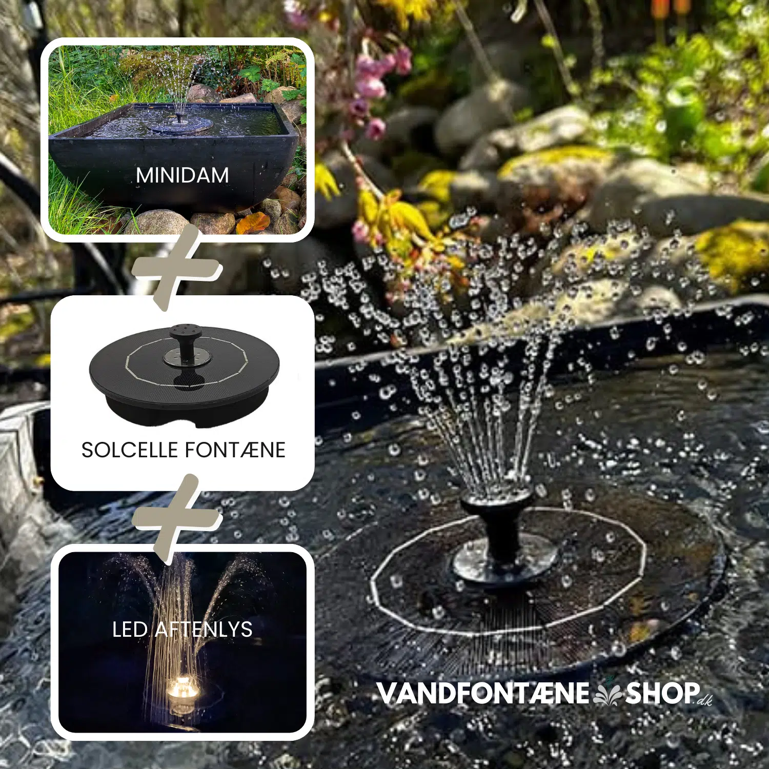 Minidam med flydende solcelle fontæne springvand Se også filmen med produktet længere nede på denne side. Tip: Ønsker du at købe flydende solcelle fontæne springvandet UDEN minidam fadet? Så klik her og se varen . Pakke med både solcelle-d