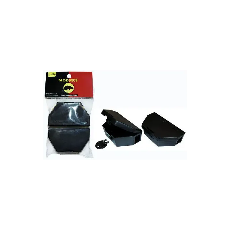 Muselokkeboks T/korn/pasta 2 Stk – 228-709Musegiftkasse. Muselokkeboks til musekorn og musepasta. Sort plast med nøgle. Lille model, kan stå overalt. SB-pakning med 2 stk.